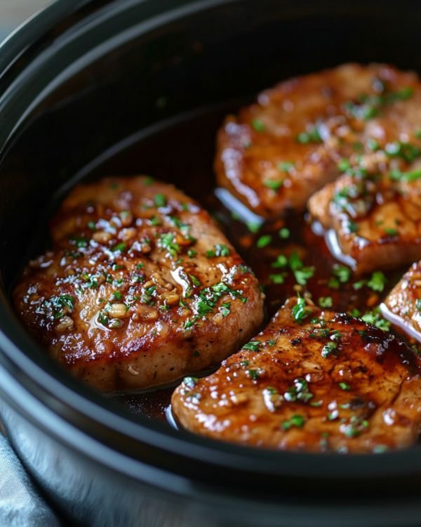 1️⃣ Place pork chops in slow cooker.