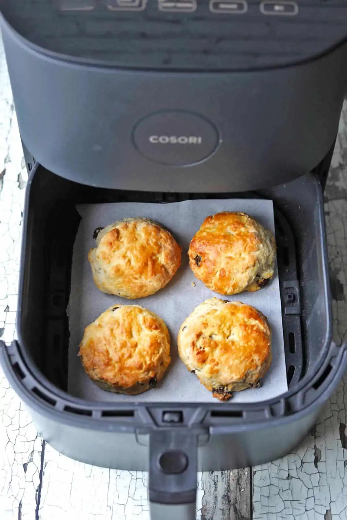 Close the air fryer and set to 185C (365F). Bake the scones for 11 minutes.
