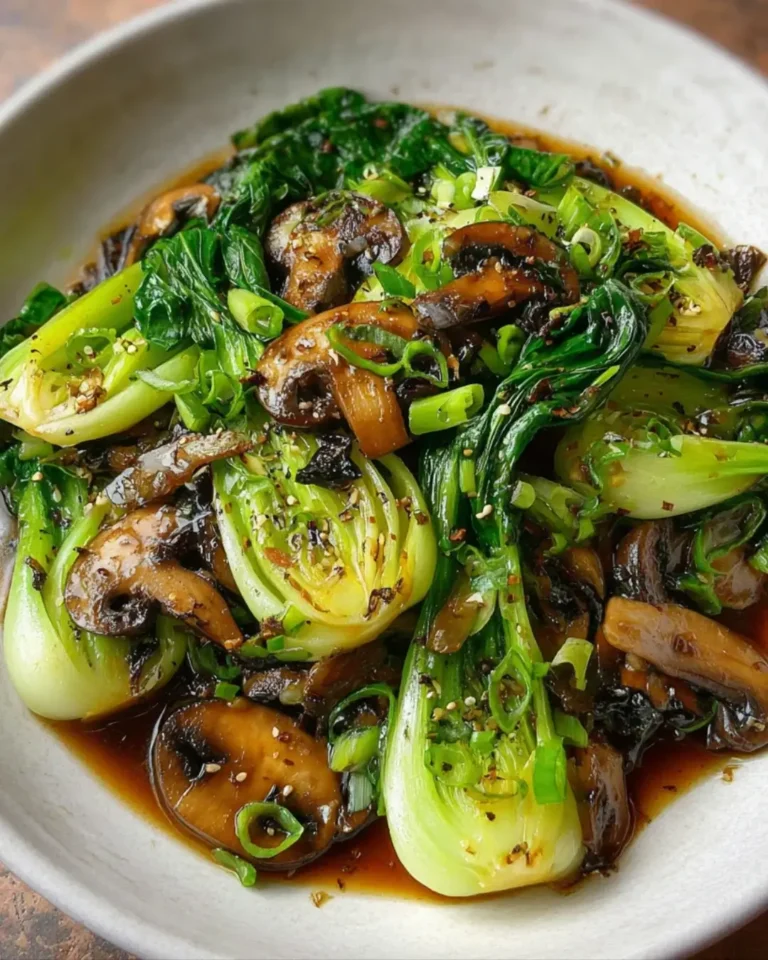 A quick, savory Asian-style vegetable dish that’s perfect as a healthy side. Tender bok choy and earthy mushrooms are coated in a glossy, umami-rich oyster sauce.