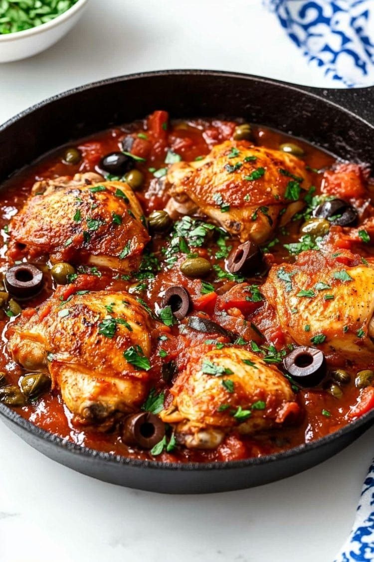 Add olives and capers around the chicken.