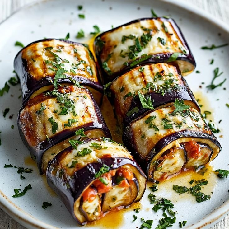 Tender roasted eggplant slices rolled around a creamy cheese filling and baked in marinara — this Italian-style comfort dish is lighter than lasagna but just as satisfying.
