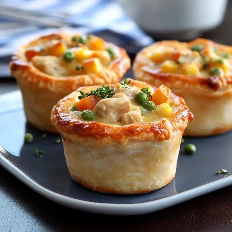 Chicken Pot Pie Biscuit Cups are a fun, easy twist on classic pot pie—flaky biscuit cups filled with creamy chicken and veggies. Perfect for quick dinners, snacks, or party appetizers.