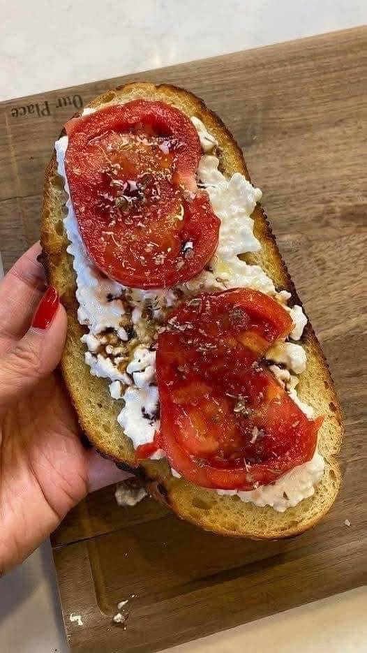 A simple, satisfying toast with creamy cottage cheese, juicy tomatoes, olive oil, and herbs — perfect for breakfast, lunch, or snack 😍