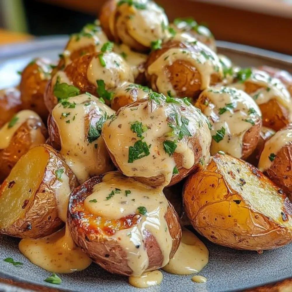 Tender baby potatoes coated in a rich, velvety garlic cream sauce—this dish is comforting, flavorful, and perfect as a side or even a main!