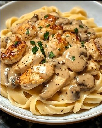 A rich, comforting pasta loaded with juicy chicken, golden mushrooms, garlic, and a silky Parmesan cream sauce. Perfect for weeknight dinners or special occasions!
