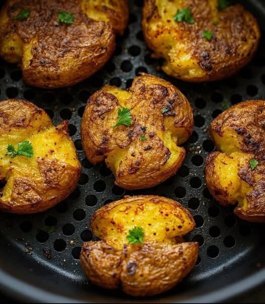 Crispiest when potatoes are dry before smashing.