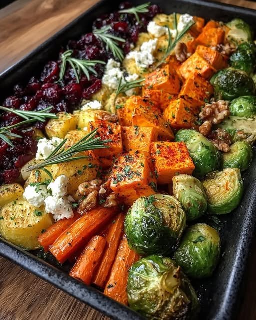 This colorful sheet-pan dish combines caramelized roasted vegetables with tangy feta, crunchy walnuts, and sweet dried cranberries for the perfect balance of savory, sweet, and nutty flavors. It’s ideal as a vegetarian main, hearty side, or meal-prep bowl base — naturally rich in fiber, antioxidants, and healthy fats.